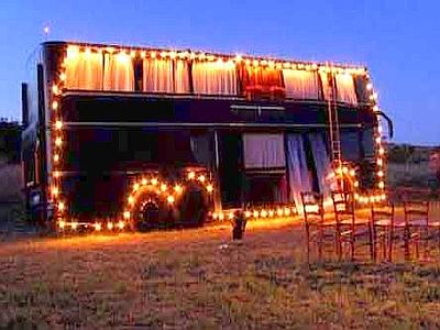 2) Domattina, salute permettendo, dovrei partire con Hic Sunt Histriones per una cosa molto à la Capitan Fracassa – o, se preferite, Scaramouche. Andiamo in quel di Biella con il mio atto unico Aninha. Non sto ancora benissimo, e l’idea del viaggio, del freddo e della neve mi scombussola un po’. E sì, il carro coperto e le sgambate notturne e i bivacchi nei boschi sono soltanto nella mia immaginazione guastata da troppi romanzi storici – but still. E l’immagine qui di fianco è merito della mia amica Milla, che ha scovato da qualche parte questo meraviglioso autobus convertito in teatro… l’Autobus di Tespi! Naturalmente non abbiamo nulla del genere – ma sarebbe fantastico.