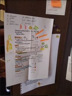 E io la lavagnetta di sughero ce l’ho. In fact, ne ho tre. Una è appesa alla parete davanti al mio computer, e le altre due vivono in giro per casa, coperte di cartoncini come quella che vedete qui. “È che sono piccole,” ho detto a M. “Hai visto quanti sono i cartoncini di TW – e grandi, per giunta. Non ci staranno mai tutti…”